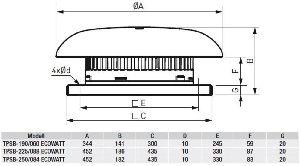 S&P Dachventilator TPSB/2-225/088 ECOWATT horizontalmit EC-Motor
