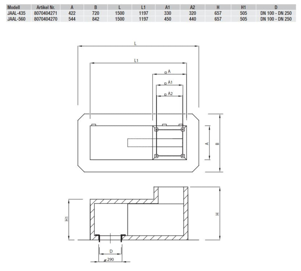 S&P JAAL-AST-250 Bodenplatte mit Anschlussstutzen DN250