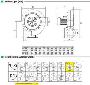 S&P Mitteldruck-Radialventilator CBT-80 N (Motor außerhalb des Luftstroms)