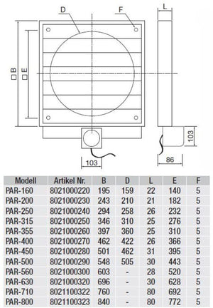 Verschlussklappe PAR-800