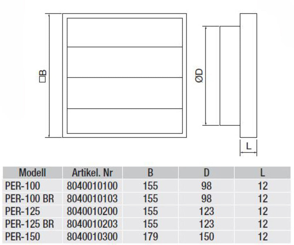 S&P Verschlussklappe PER-125 BR, selbsttätig, braun