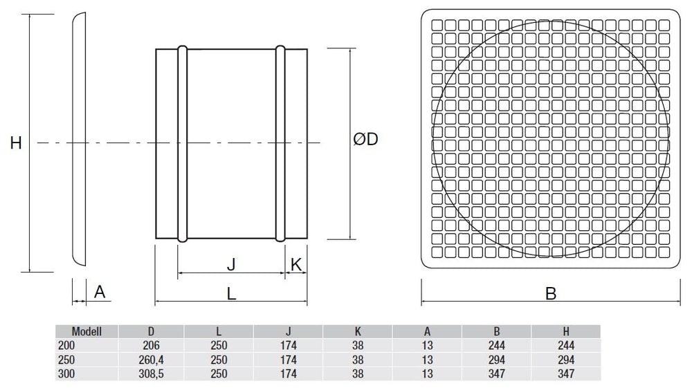 S&P Wandeinbau-Ventilator TREB/4-200 SG mit Schutzgitter, 230V