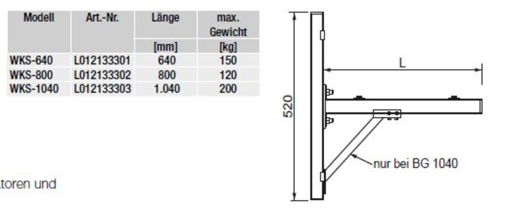 Wandkonsolen-Länge 640 mm
