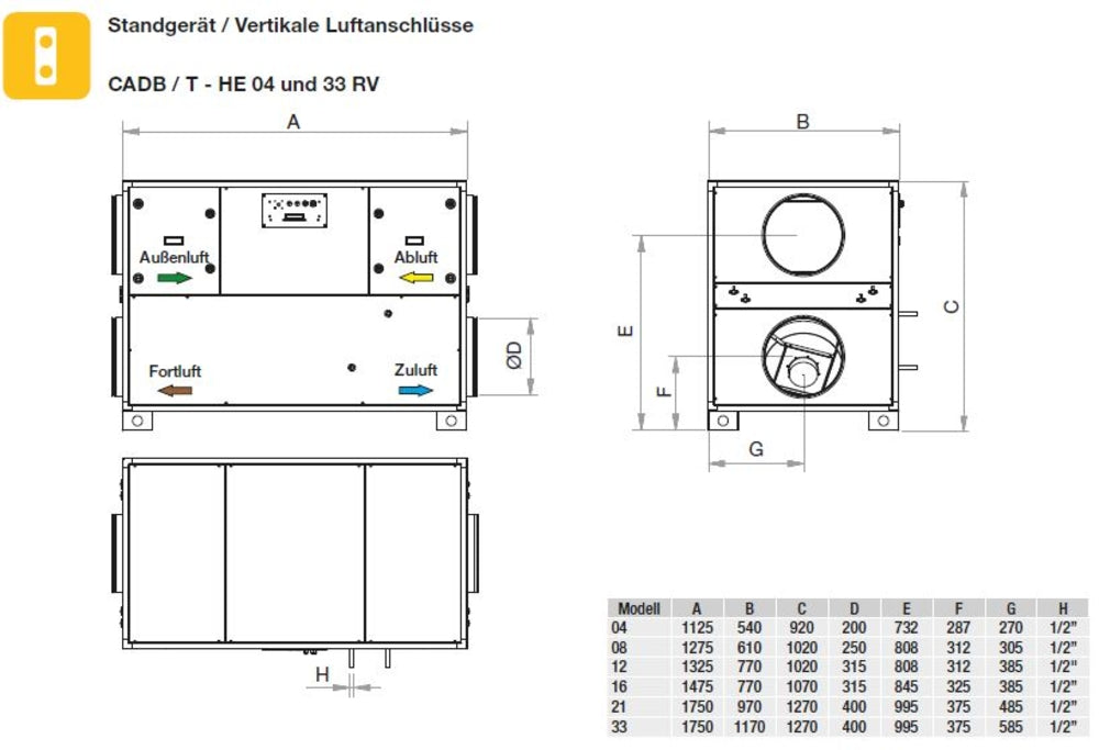 S&P WRG-Gerät CADB-HE-D 16 RV PRO-REG mit Gegenstrom-WT, vertikal