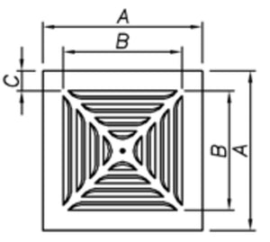 späth Deckenluftauslass 52-FR-4-Stamp 445/300, 4-seitig ausblasend, gestanzte, umlaufende Lamellen