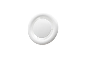Lüftungsventile DVS für Abluft und DVS-P für Zuluft, bestehend aus dem Ventilring mit Randabdichtung, dem Ventilteller mit Gewindespindel und Mutter und dem Einbaurahmen. Frontteile aus Stahlblech, pulverbeschichtet (ähnlich RAL 9010). Gewindespindel und Mutter aus verzinktem Stahl, Einbaurahmen aus verzinktem Stahlblech.