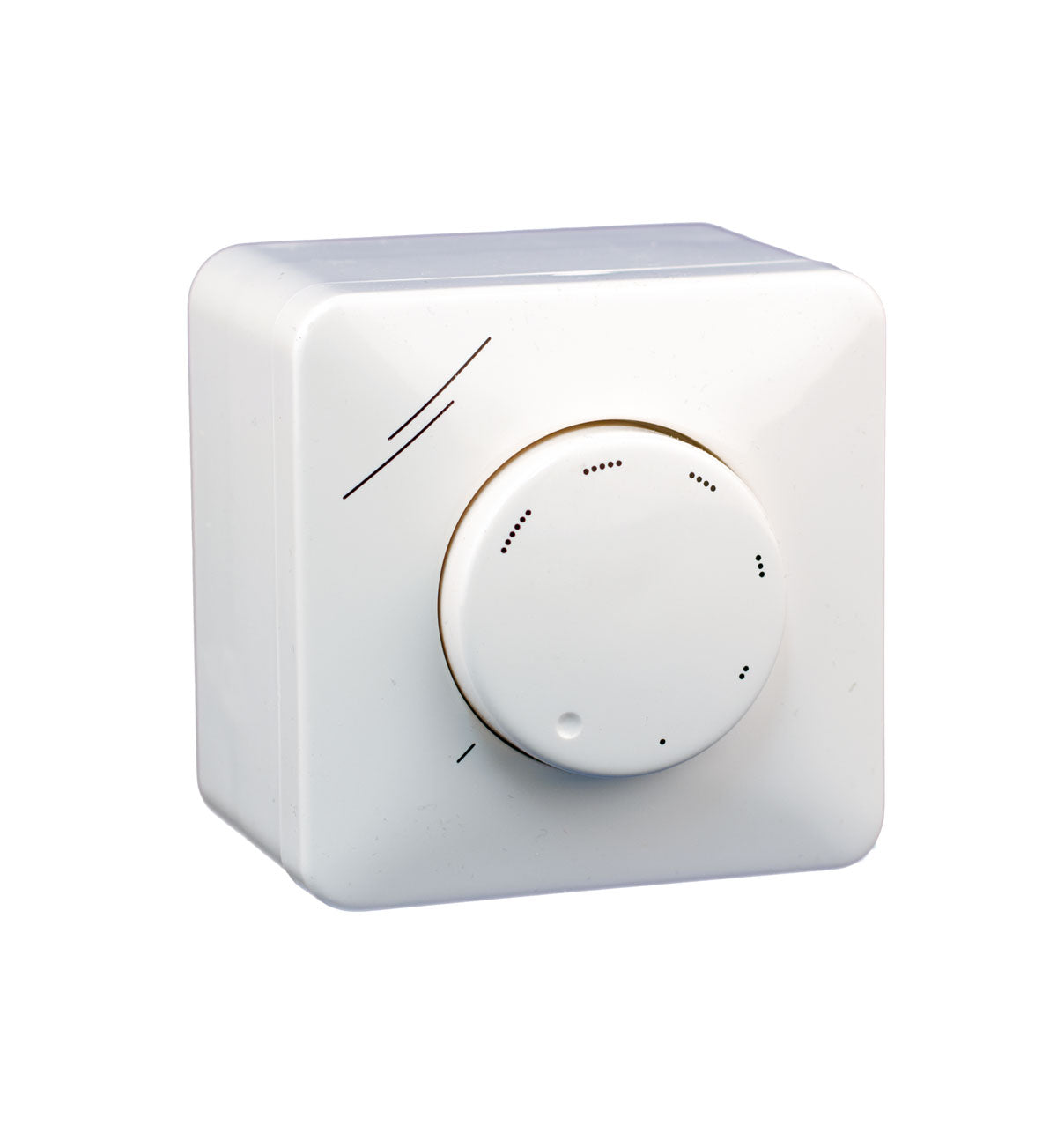späth Drehzahlpotentiometer für EC-VentilatorenDas späth Drehzahlpotentiometer REP/P/0-10V/230V ist für die Ansteuerung von EC-Ventilatoren konstruiert, die keine eigene 10V Speisespannung zur Verfügung stellen. Das im Potentiometer verbaute Netzteil erzeugt aus der 230V Netzspannung an den Eingangsklemmen eine 10V Steuerspannung. An den Ausgangsklemmen wird die Reglerstellung als Sollwert mit 0-10V ausgegeben.Das Drehzahlpotentiometer verfügt über ein Kombigehäuse und kann daher sowohl auf Putz als auch Unterputz eingebaut werden. Neben der Ansteuerung von EC-Motoren eignen sich die späth Drehzahlpotentiometer für eine Vielzahl an anderen Steueraufgaben wie der Sollwertvorgabe für Frequenzumrichter etc.