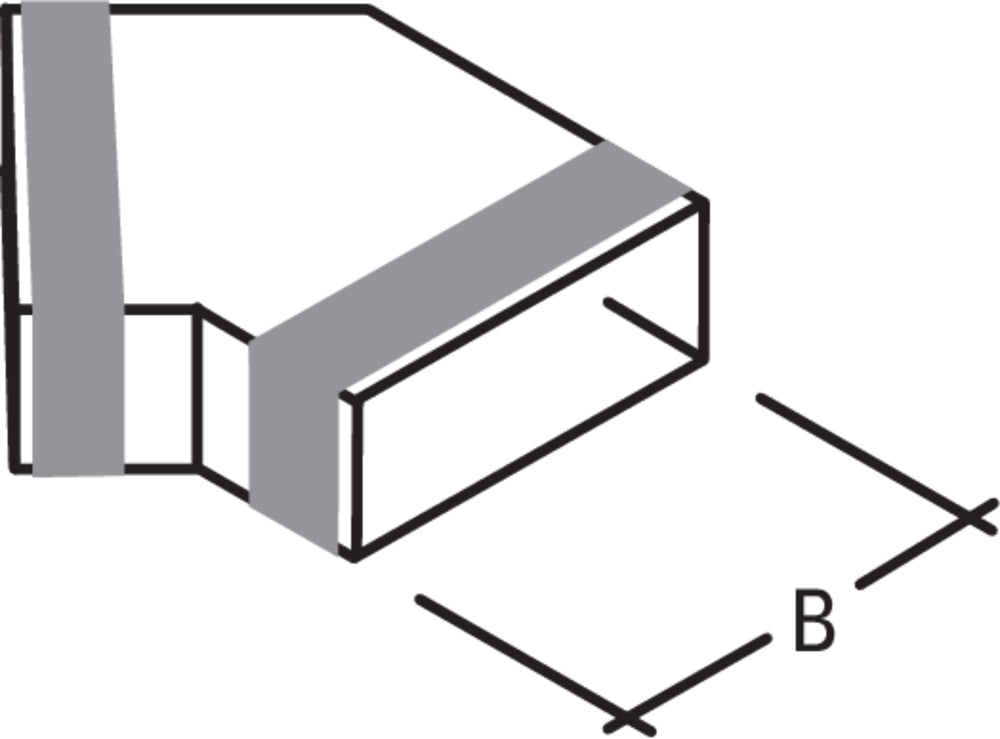 Luftleitsystem aus nichtbrennbaren Lüftungsleitungen. Standard-Bauhöhe 52 mm (fertigungsbedingte Toleranzen von ±2 mm möglich). Stutzenlänge bzw. Einstecktiefe 2 x 40 mm. Material: Stahlblech verzinkt, Edelstahl (V2A) auf Anfrage.