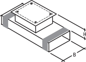 Luftleitsystem aus nichtbrennbaren Lüftungsleitungen. Standard-Bauhöhe 52 mm (fertigungsbedingte Toleranzen von ±2 mm möglich). Länge je Stück = 200 mm, H = 60 mm, Stutzen kürzbar. Material: Stahlblech verzinkt, Edelstahl (V2A) auf Anfrage.