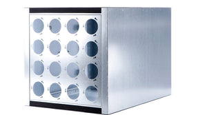Die Kanalfiltergehäuse des Typs FGP-XL/PA zur zweistufigen Filterung Grob- und Feinstaub sowie von gasförmigen Stoffen sind mit Aufnahmen für Filterelemente wie Taschen- oder Kompaktfilter und für Aktivkohlepatronen Ø145mm ausgestattet.
