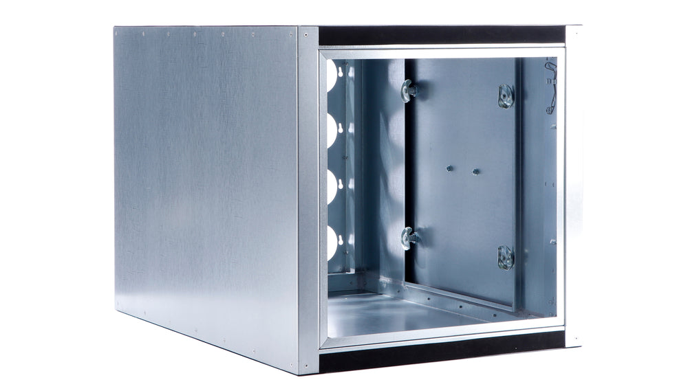 Die Kanalfiltergehäuse des Typs FGP-XL/PA zur zweistufigen Filterung Grob- und Feinstaub sowie von gasförmigen Stoffen sind mit Aufnahmen für Filterelemente wie Taschen- oder Kompaktfilter und für Aktivkohlepatronen Ø145mm ausgestattet.
