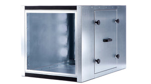 Die Kanalfiltergehäuse des Typs FGP-XL/PA zur zweistufigen Filterung Grob- und Feinstaub sowie von gasförmigen Stoffen sind mit Aufnahmen für Filterelemente wie Taschen- oder Kompaktfilter und für Aktivkohlepatronen Ø145mm ausgestattet.
