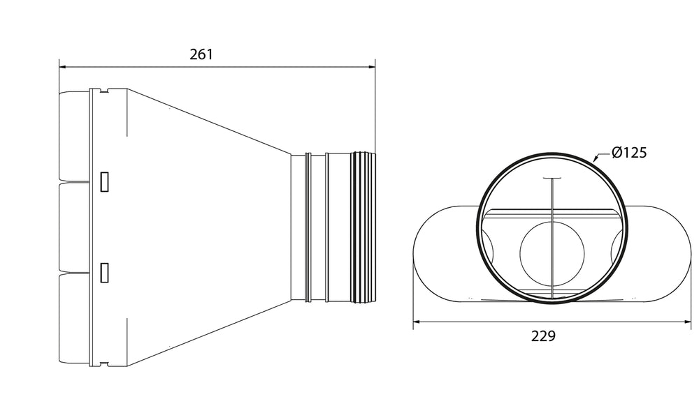 späth Uniflexplus+ gerader Übergang RR-125-63 NW 125mm auf 3 x NW 63mm