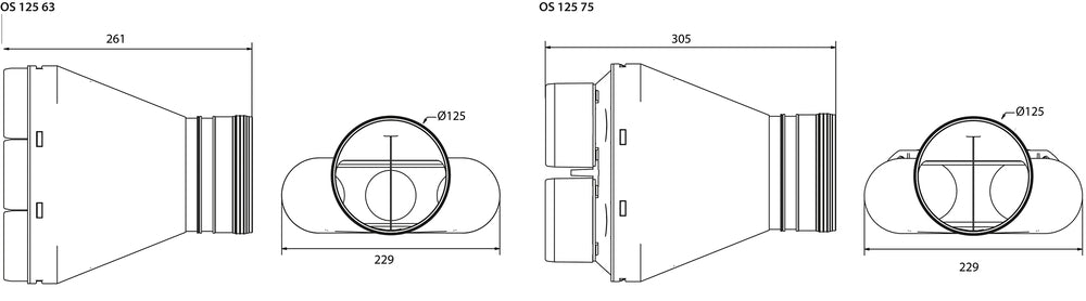 späth Uniflexplus+ gerader Übergang RR-125-75 NW 125mm auf 2 x NW 75mm