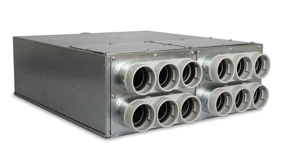 späth Uniflexplus+ Stahlblech-Luftverteiler VK NW 125, Größe S, KWL-Rohranschlüsse 12 x NW 63mm
