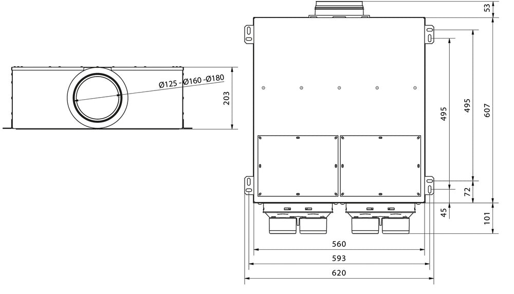späth Uniflexplus+ Stahlblech-Luftverteiler VK NW 180, Größe S, KWL-Rohranschlüsse 8 x NW 75mm