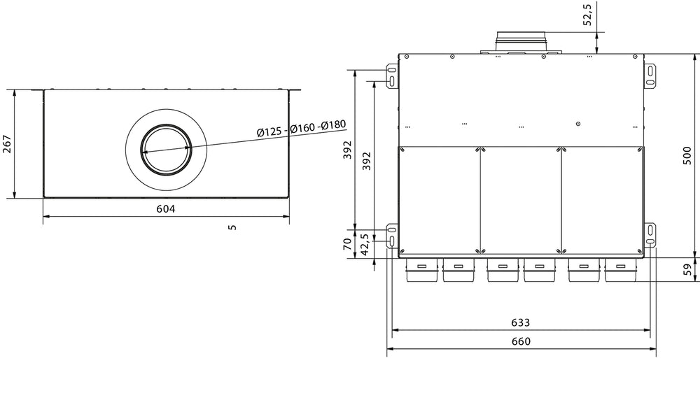 späth Uniflexplus+ Stahlblech-Luftverteilkasten VK NW 125, Größe L, KWL-Rohranschlüsse 18 x NW 63mm