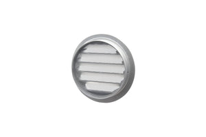 späth Wetterschutzgitter rund aus Aludruckguß, grau lackiert RAL 9006 mit innenliegendem Insektenschutzgitter 2x2 mm. Das Gitter kann bauseits mit Bohrungen für Schraubmontage oder Dichtungen z.B. aus Kanalband für eine Steckmontage in Normrohren versehen werden.