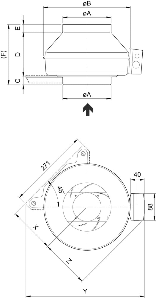 100 % steuerbar durch 0-10 V Signal. Die Ventilatoren sind mit einem im Klemmkasten montierten Potentiometer (0-10 V) ausgestattet; voreingestellt auf einen Wert zwischen 6-10 V (Werkseinstellung). Dieser kann leicht angepasst werden, falls die Installation einen anderen Betriebspunkt erfordert.