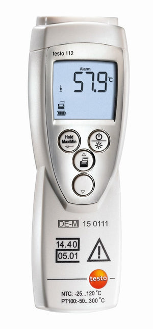 Unser eichfähiges Temperaturmessgerät testo 112 mit PTB-Bauartprüfung ist für amtliche Kontrollmessungen von Lebensmittelkontrolleuren, Gutachtern und Behörden zugelassen. Dank NTC- und Pt100-Technologie misst das 1-Kanal-Temperaturmessgerät besonders präzise.Hochgenaues, eichfähiges Temperaturmessgerät mit PTB-Bauartprüfung – zugelassen für amtliche Messungen Produktvorteile: Ein ansteckbarer Temperaturfühler anschließbar – NTC- und Pt100-Fühler für zahlreiche Praxisanforderungen optional erhältlich Nützliche Funktionen: Minimal-/Maximalwertspeicher und akustischer Alarm Dank wasser- und schmutzabweisender Schutzhülle TopSafe (optional) ideal für den Einsatz im Lebensmittelbereich