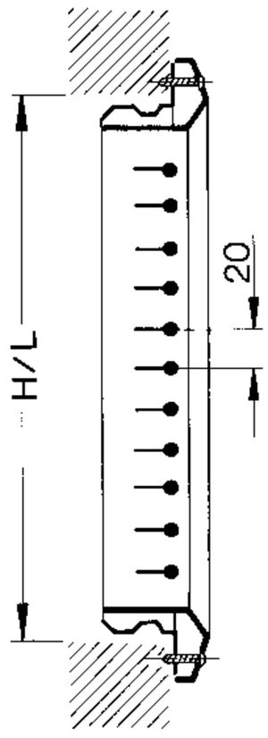 Lüftungsgitter aus Stahlblech in rechteckiger Bauform für Zuluft und Abluft. Formschöner schräg auslaufender Frontrahmen mit Innenfase. Vorzugsweise für Wand- und Brüstungseinbau, jedoch auch für rechteckige Luftleitungen. Einbaufertige Komponente, bestehend aus Frontrahmen und einzeln verstellbaren, waagerechten Lamellen. Verdeckte Schraubbefestigung oder Warzenlochung zum Einbau in einen Einbaurahmen oder Befestigung auf der Einbaufläche. Schallleistungspegel des Strömungsgeräusches gemessen nach EN ISO 5135.
