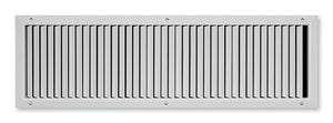 Lüftungsgitter aus Stahlblech in rechteckiger Bauform für Zuluft und Abluft. Formschöner schräg auslaufender Frontrahmen mit Innenfase. Vorzugsweise für Wand- und Brüstungseinbau, jedoch auch für rechteckige Luftleitungen. Einbaufertige Komponente, bestehend aus Frontrahmen und einzeln verstellbaren, senkrechten Lamellen. Verdeckte Schraubbefestigung oder Warzenlochung zum Einbau in einen Einbaurahmen oder Befestigung auf der Einbaufläche. Schallleistungspegel des Strömungsgeräusches gemessen nach EN ISO 5135.