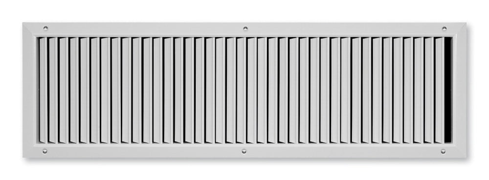 Lüftungsgitter aus Stahlblech in rechteckiger Bauform für Zuluft und Abluft. Formschöner schräg auslaufender Frontrahmen mit Innenfase. Vorzugsweise für Wand- und Brüstungseinbau, jedoch auch für rechteckige Luftleitungen. Einbaufertige Komponente, bestehend aus Frontrahmen und einzeln verstellbaren, senkrechten Lamellen. Verdeckte Schraubbefestigung oder Warzenlochung zum Einbau in einen Einbaurahmen oder Befestigung auf der Einbaufläche. Schallleistungspegel des Strömungsgeräusches gemessen nach EN ISO 5135.