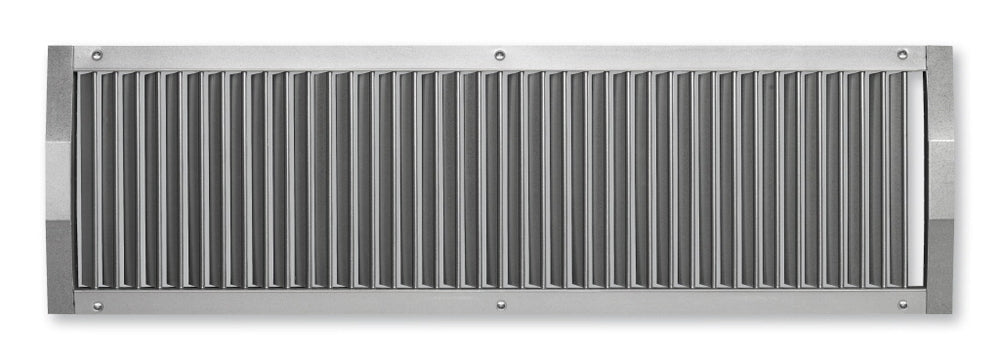 Lüftungsgitter aus verzinktem Stahlblech in rechteckiger Bauform für Zuluft und Abluft. Formschöner schräg auslaufender Frontrahmen mit Innenfase. Vorzugsweise für den Einbau in runde Luftleitungen. Einbaufertige Komponente, bestehend aus Frontrahmen und einzeln verstellbaren, senkrechten Lamellen. Warzenlochung zur Befestigung auf der Einbaufläche. Schallleistungspegel des Strömungsgeräusches gemessen nach EN ISO 5135.