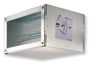 Volumenstromregler in rechteckiger Bauform für konstante Volumenstromsysteme, mechanisch selbsttätig, ohne Hilfsenergie, für Zu- oder Abluft, in 19 Nenngrößen. Inbetriebnahmebereiter Regler, bestehend aus dem Gehäuse mit leichtgängig gelagerter Regelklappe, Regelbalg und außenliegender Kurvenscheibe mit Blattfeder. Volumenstromregler ohne Stellantrieb, sind werkseitig auf einen Referenz-Volumenstrom eingestellt (Einstellung des gewünschten Volumenstromes vor Ort durch den Kunden). Ventilator- und raumseitig geeignet zum Anbau von Luftleitungsprofilen. Gehäuse-Leckluftstrom nach EN 1751, Klasse C (B + H ? 400, Klasse B).