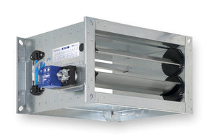 VVS-Regelgeräte in rechteckiger Bauform für variable und konstante Volumenstromsysteme, für Zuluft oder Abluft, in 39 Nenngrößen. Hohe Regelgenauigkeit der eingestellten Volumenströme. Inbetriebnahmebereites Gerät, bestehend aus den mechanischen Bauteilen und den elektronischen Regelkomponenten. Geräte enthalten einen Mittelwert bildenden Differenzdrucksensor zur Volumenstrommessung und Regelklappen. Regelkomponenten werkseitig montiert, verschlaucht und verdrahtet. Differenzdrucksensor mit Messbohrungen 3 mm, dadurch unempfindlich gegen Verschmutzung. Ventilator- und raumseitig geeignet zum Anbau von Luftleitungsprofilen. Position der Regelklappen von außen durch die Achsform erkennbar. Gehäuse-Leckluftstrom nach EN 1751, Klasse B.