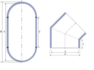 Ovalrohr-Bogen 45° horizontal aus hochdämmenden PUR-Hartschaum, Innenbeschichtung mit GFK brilliant ( Glasfaserverstärkter Kunststoff )