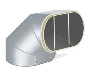 Ovalrohr-Bogen 90° horizontal aus hochdämmenden PUR-Hartschaum, Innenbeschichtung mit GFK brilliant ( Glasfaserverstärkter Kunststoff )