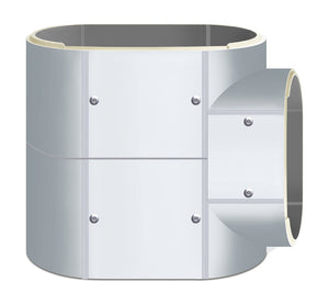 Ovalrohr-T-Stück 90° vertikal aus hochdämmenden PUR-Hartschaum, Innenbeschichtung mit GFK brilliant ( Glasfaserverstärkter Kunststoff )
