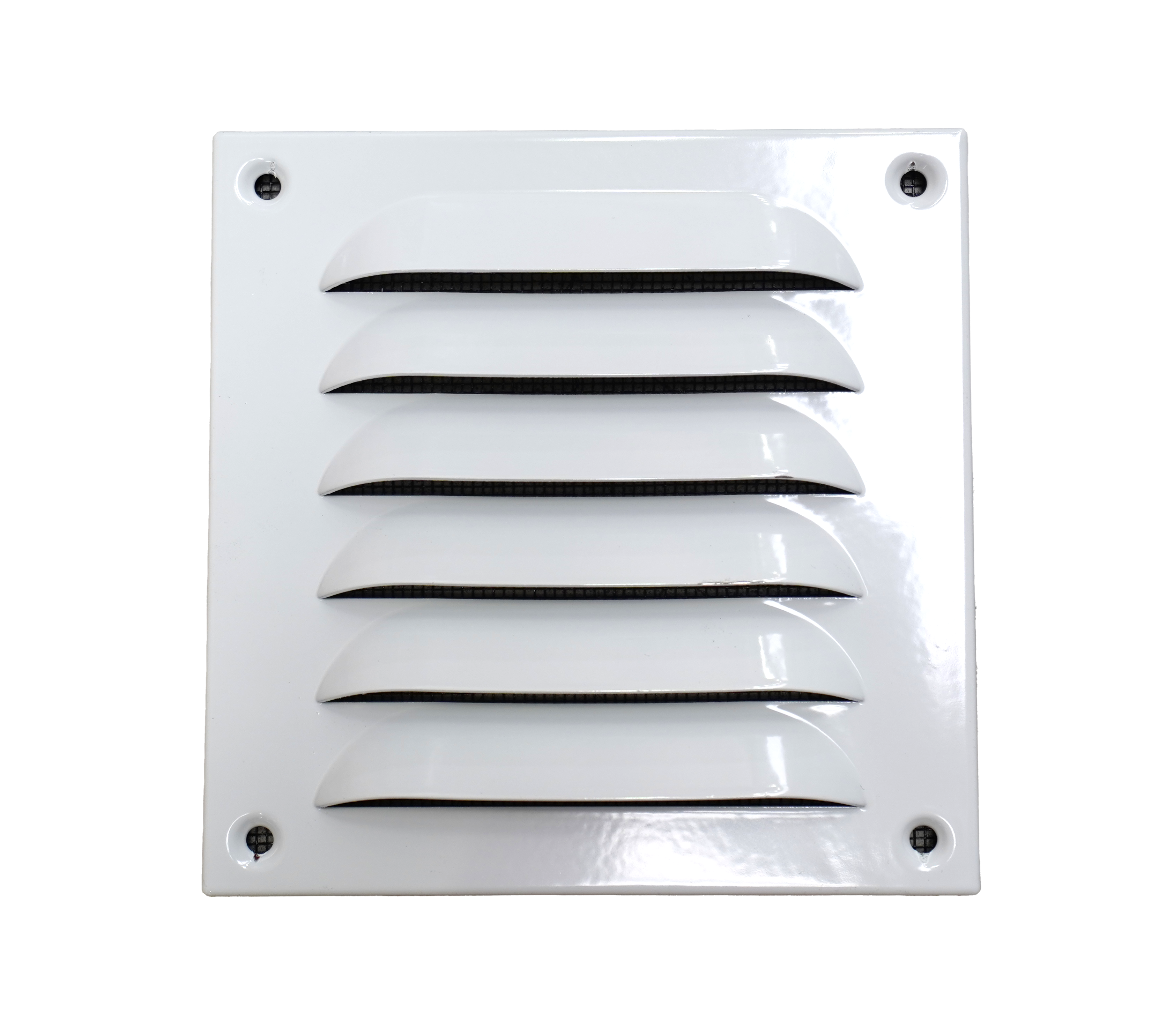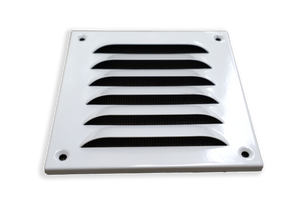 Wetterschutzgitter mit Fliegendraht, Alu-weiß, LxBxH = 15x440x240mm